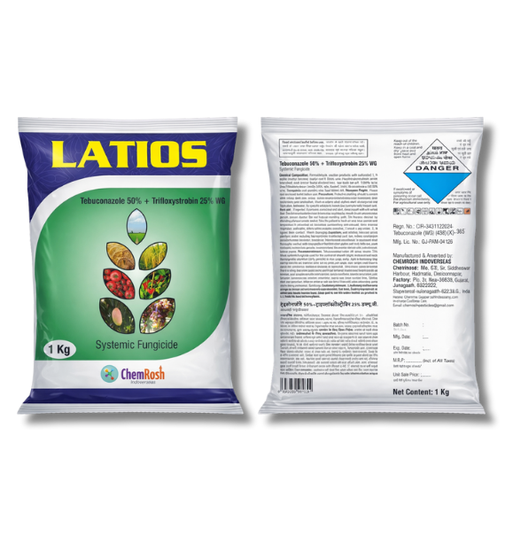Latios is a powerful broad-spectrum systemic fungicide combining the strengths of Tebuconazole and Trifloxystrobin. Designed for preventive and curative action, it offers effective control against a wide range of fungal diseases across various crops. Its dual mode of action ensures healthier plants, improved flowering, and enhanced yields. Suitable for cereals, vegetables, fruits, and other crops, Latios delivers long-lasting protection under diverse conditions.